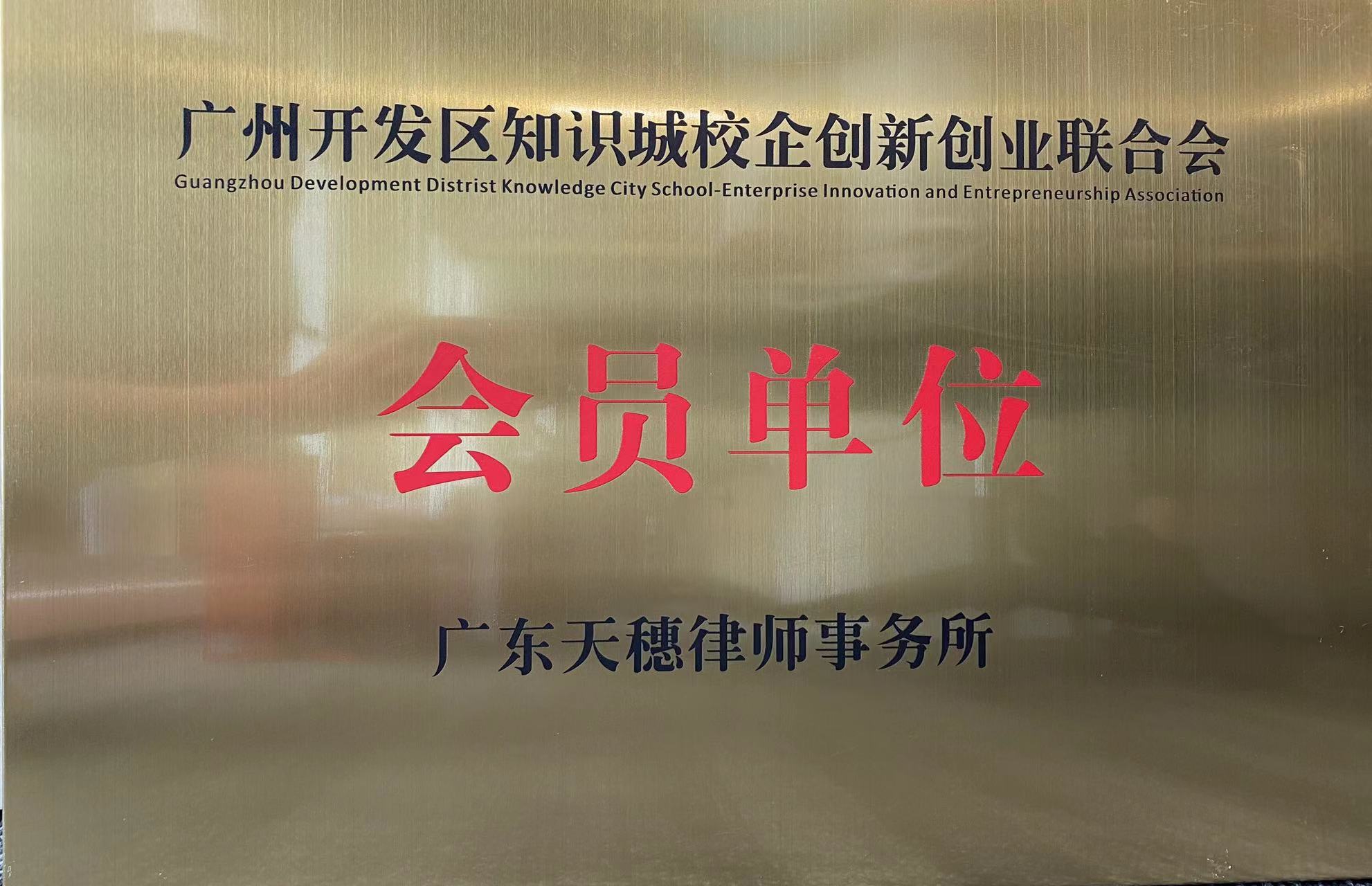 西安電(diàn)子科(kē)技大學(xué)广州研究院、广州大學(xué)黄埔研究院、广东外语外贸大學(xué)黄埔研究院、中國(guó)社会科(kē)學(xué)院大學(xué)黄埔高等研究院、广东大湾區(qū)空天信息研究院、广州商(shāng)學(xué)院、广州开投润埔实业发展集团有(yǒu)限公司等24家会员单位参加会议。广东天穗律师事務(wù)所作為(wèi)校企联合会首家律所会员单位,受邀参加了本次会议并接受了中新(xīn)广州知识城开发建设办公室科(kē)技和知识产权处张博处長(cháng)的授牌。